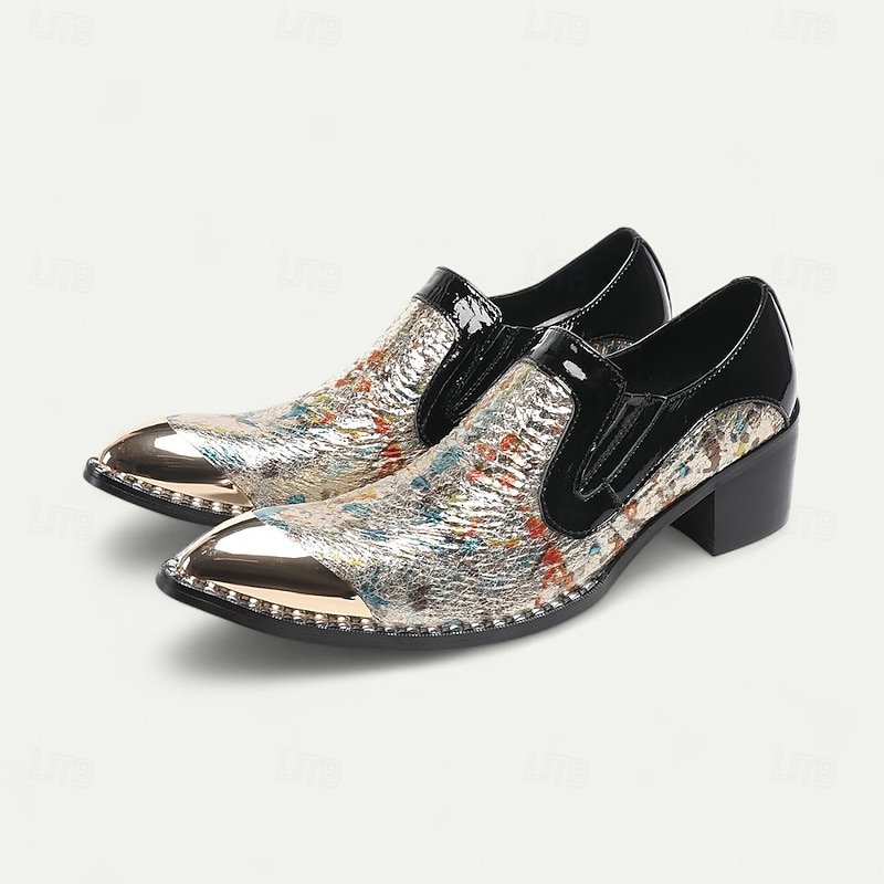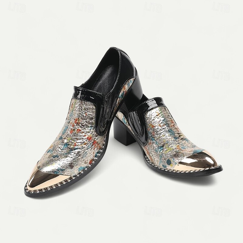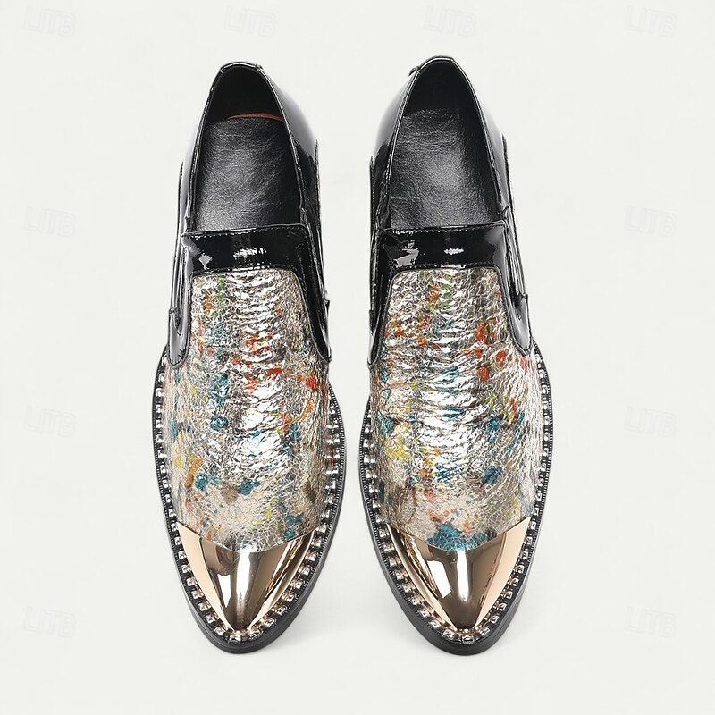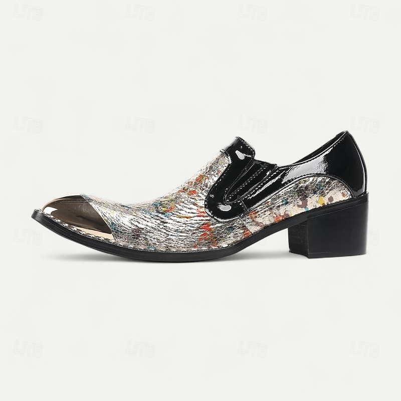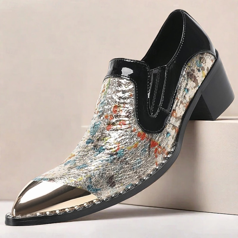 HOT ! Men's Black and Multicolor Textured Slip-On Shoes in Premium Leather Unique Fashion Style for Stylish Men Evening Events and Performances