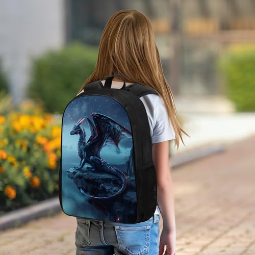 HOT ! Kids Dragon Backpack, Cool Blue Dragon Standing on the Cliff Edge School Backpacks for Boys Girls, Animal Print Bookbag Water Resistant 17" Laptop Bags Casual Travel Daypack