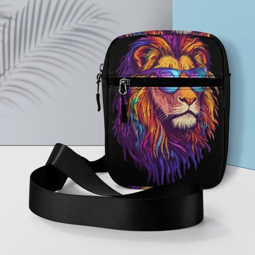 HOT ! Rasta Lion with Glasses Women's Cute Small Mini Crossbody Bag Top Zip Sling Square Shoulder Bags