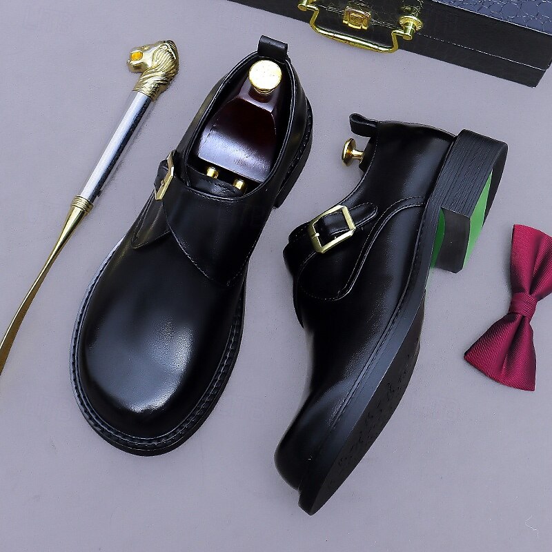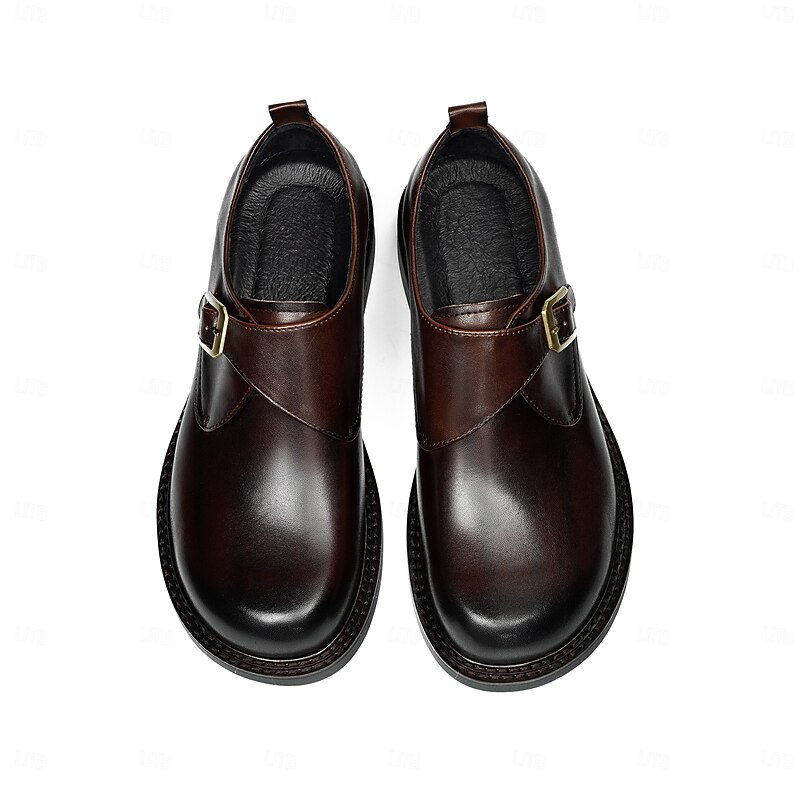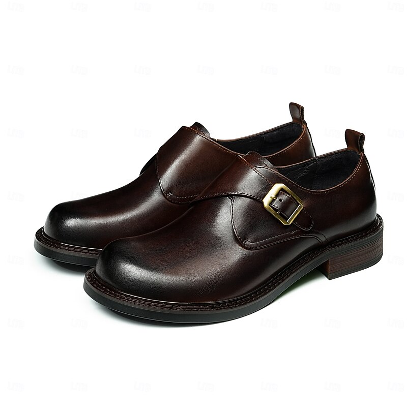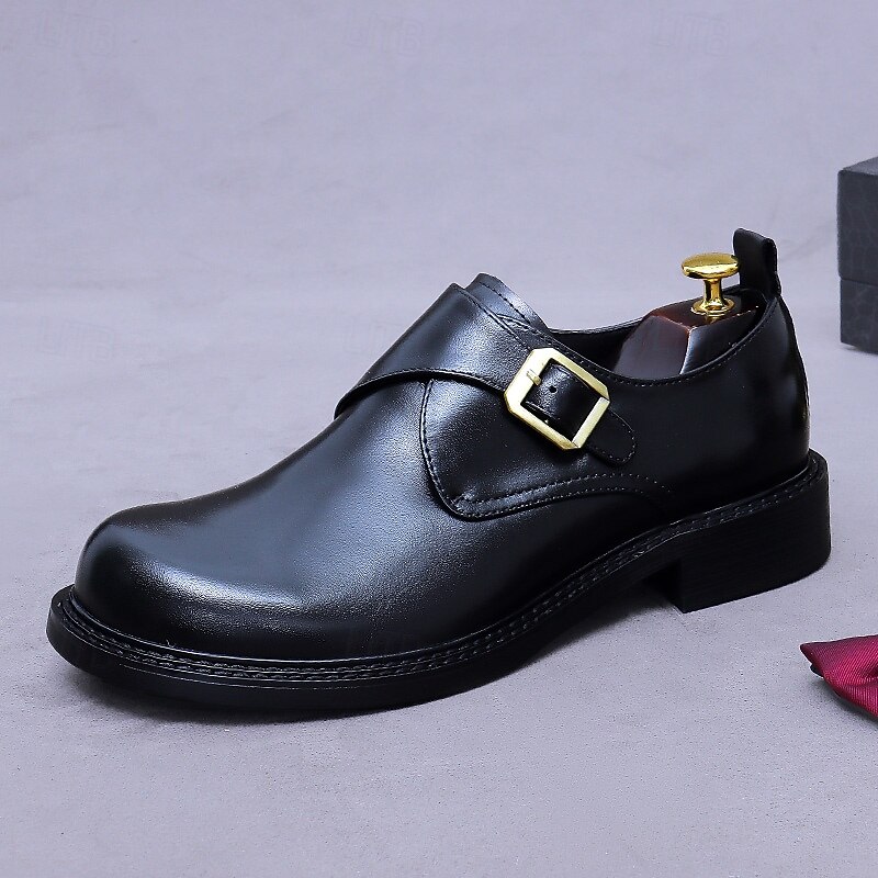 HOT ! Men's Genuine Leather Monk Strap Dress Shoes- First Layer Cowhide Classic Business Formal Buckle Shoes for Office, Weddings, and Professional Attire