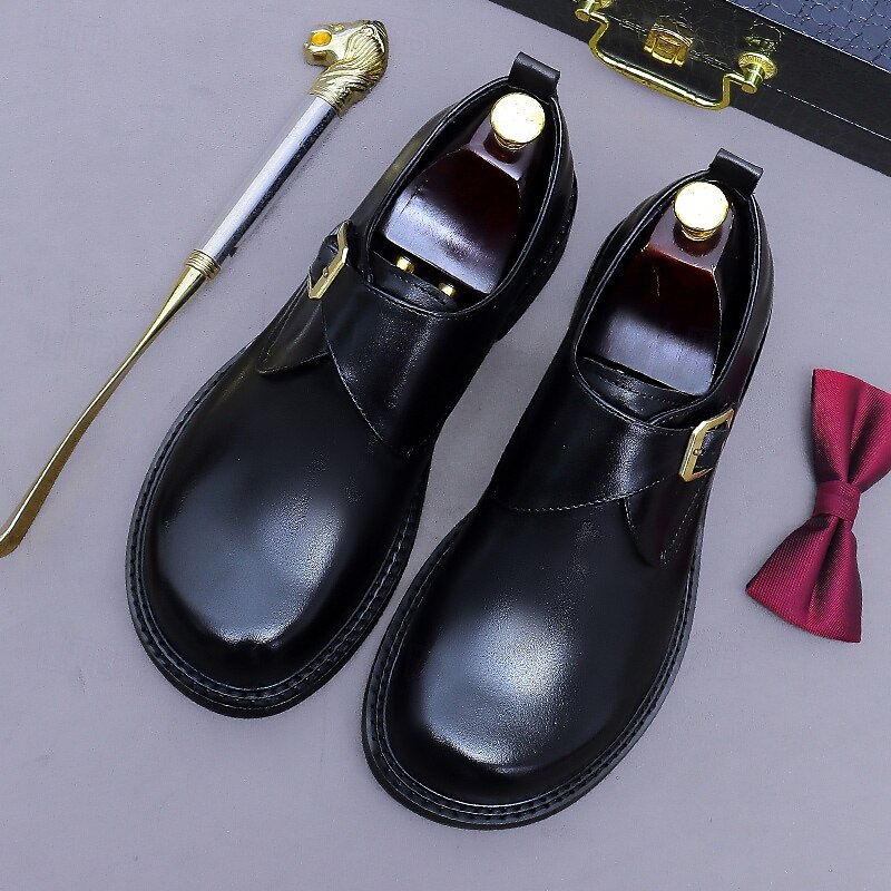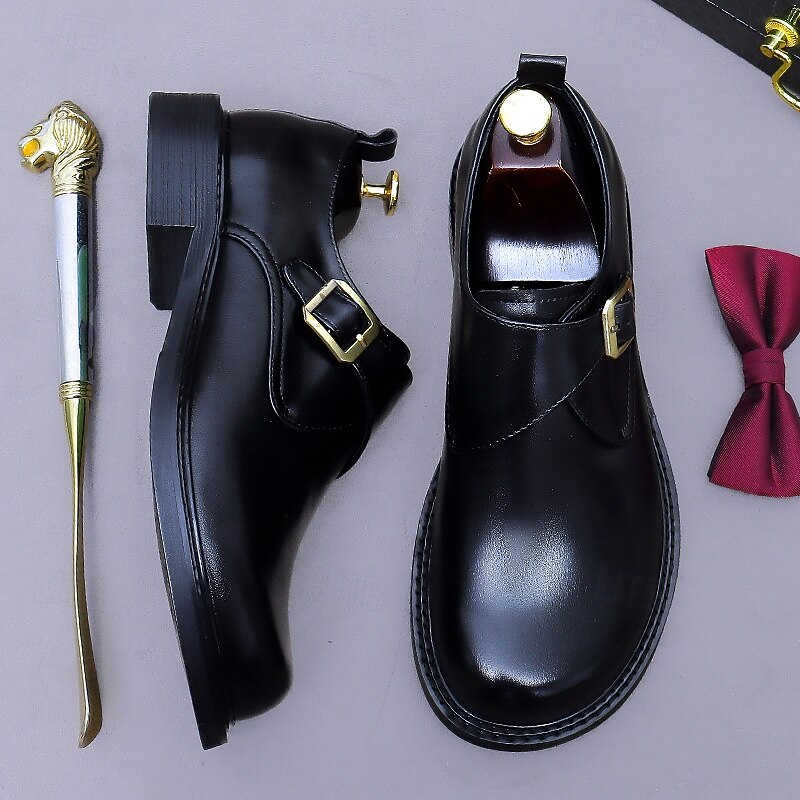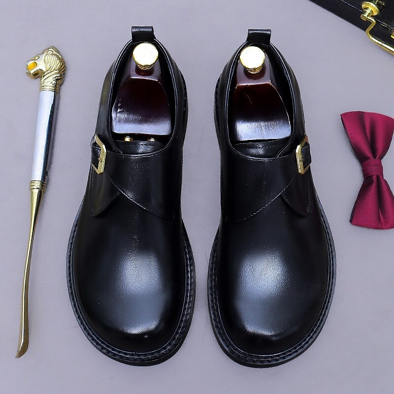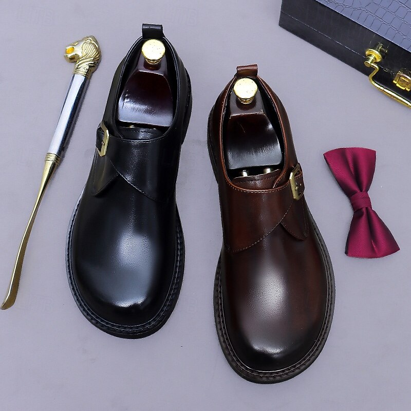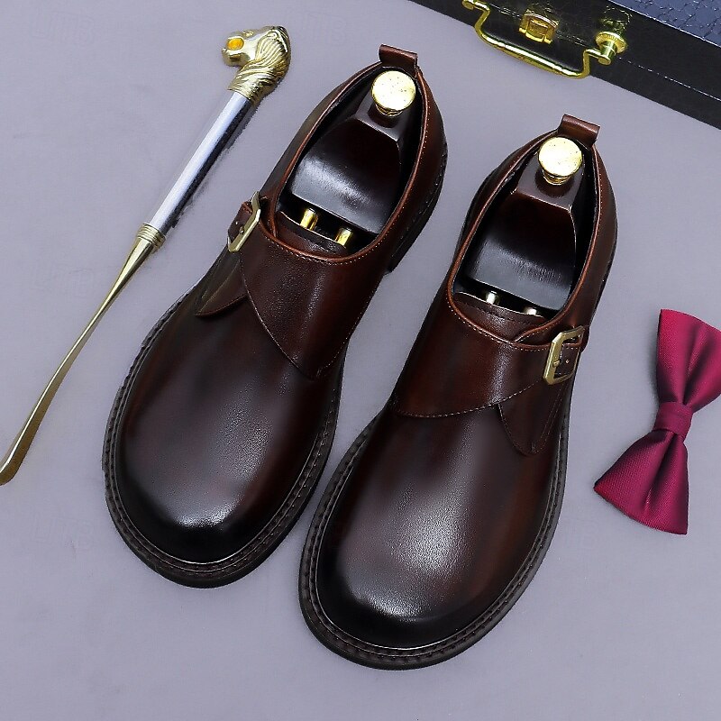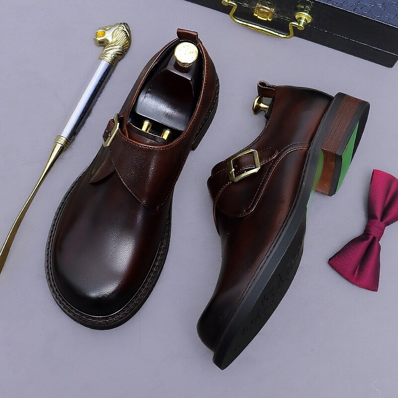 Men's Genuine Leather Monk Strap Dress Shoes- First Layer Cowhide Classic Business Formal Buckle Shoes for Office, Weddings, and Professional Attire 24