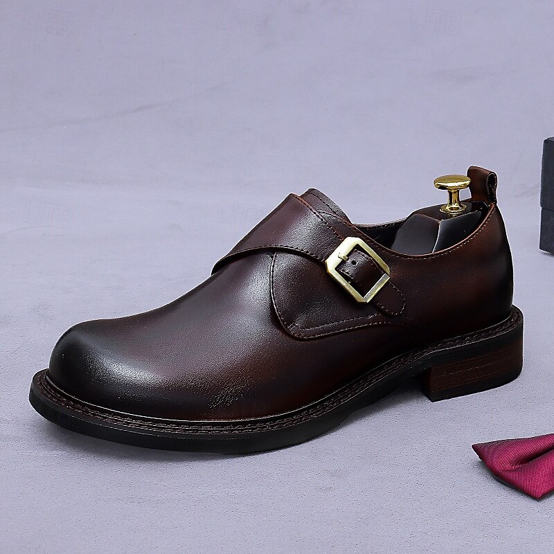 Men's Genuine Leather Monk Strap Dress Shoes- First Layer Cowhide Classic Business Formal Buckle Shoes for Office, Weddings, and Professional Attire 26