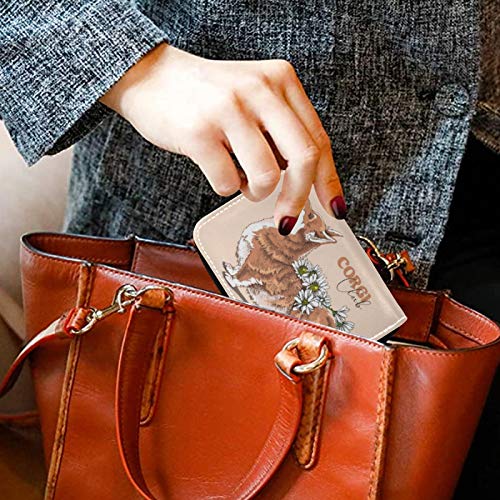 MOYYO RFID Credit Card Holder Case Funny Welsh Corgi Dog With A Chamomile Flowers Leather Printed Zipper Card Case Wallet for Women Girls 6