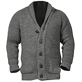 More information about Men's Cardigan Sweater Cropped Sweater Knit Sweater Ribbed Knit Regular Button Up Plain Shawl Collar Warm Ups Modern Contemporary Casual Daily Wear Clothing Apparel Fall Winter Black Brown M L XL