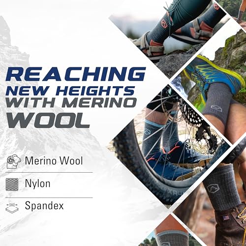 • MOISTURE WICKING – Reach new heights with Merino Wool Socks! These ultralight, moisture-wicking socks keep your feet dry and free from hot, sweaty discomfort so you can ascend the most challenging trails with ease and agility. Take your adventure as far as possible with the perfect partner for warm-weather hikes. Our wool hiking socks are designed to regulate temperature, ensuring your feet stay cool in summer and warm in cooler weather.
