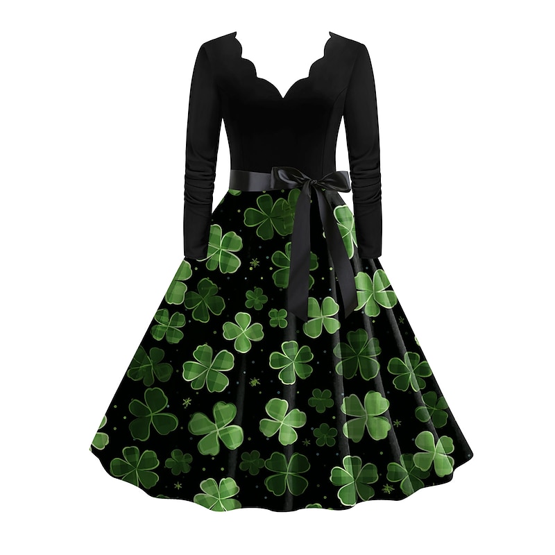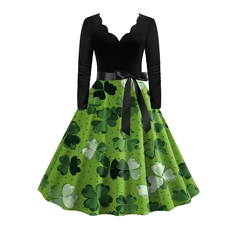 More information about 1950s Vintage Inspired Cocktail Dress Knee Length Dress A-Line Dress Tea Dress A-Line Fancy Dress Women's Saint Patrick's Day Homecoming Daily Wear Bachelorette Party Teen Adults' Dress Homecoming
