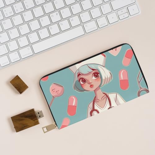Cute Nurse Printed Long Wallet for Women Men Cute Coin Purse with Card Holder 1
