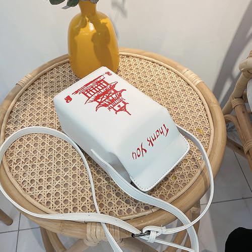 HOT ! Chinese Pagoda Print Crossbody Bag, PU Leather Thank You Purse, Mini Takeout Box Style