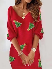 More information about Women's Mini Dress Christmas Dress Casual Dress Winter Dress Shift Dress Fashion Modern Christmas Daily Beach Regular Fit Tree Long Sleeve V Neck Red Summer Spring Fall Autumn