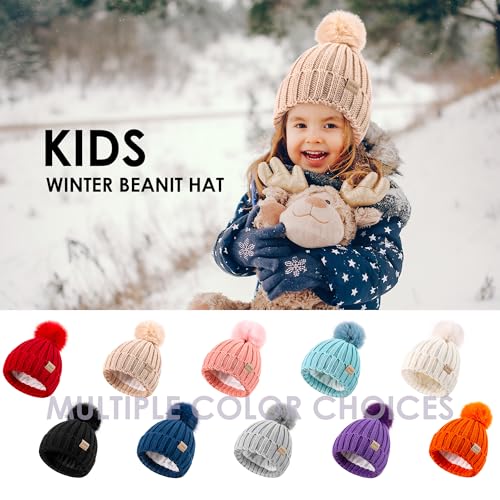 Children's Winter Warm Pompom Hat Fleece Lined Knit Beanie for Kids Aged 3-9, Perfect for Boys and Girls 4
