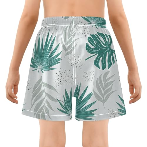 Tropical Palm Leaves Boys Swim Trunks with Compression Liner Quick Dry Bathing Bottom Kids Beach Shorts 6