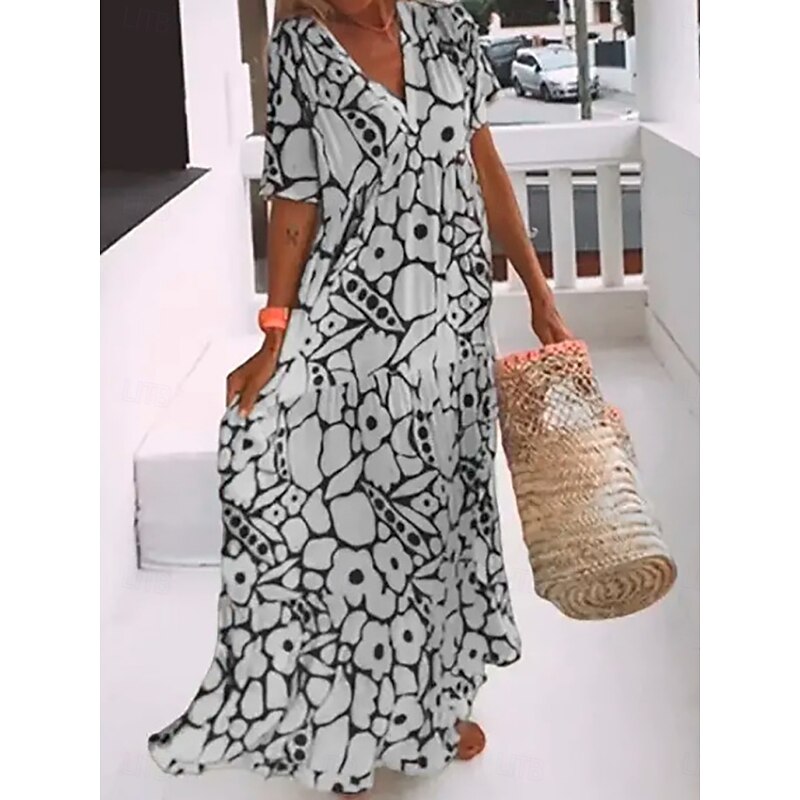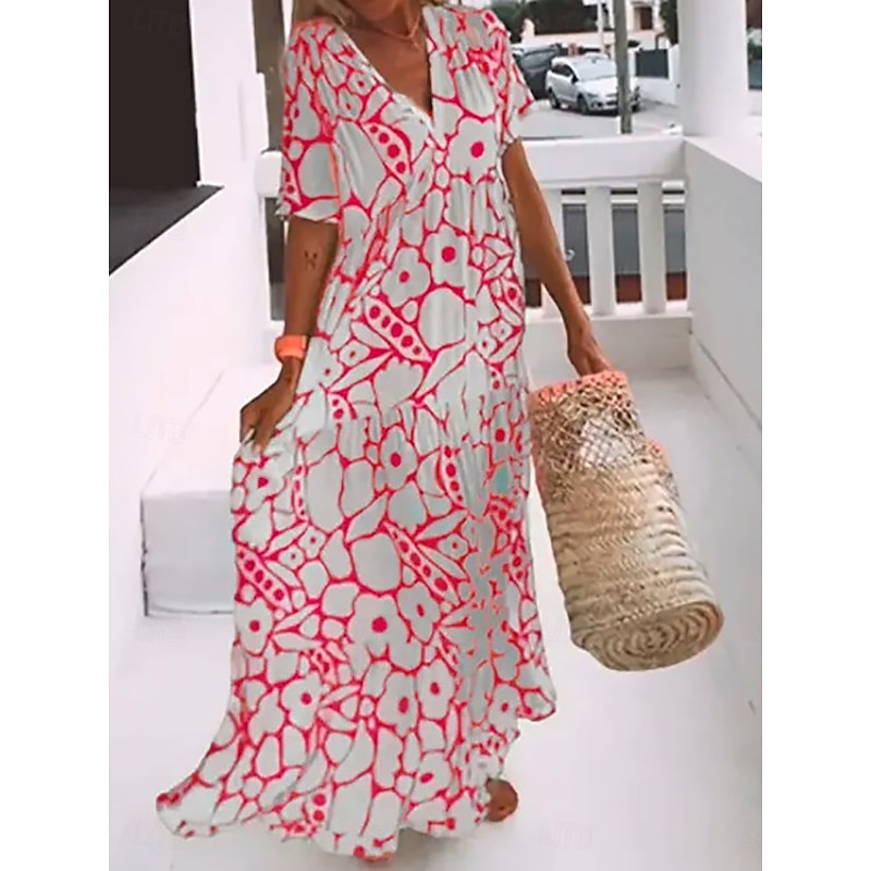 More information about Women's Maxi Dress Casual Dress Stylish Casual Vacation Daily Regular Fit Floral Half Sleeve V Neck Black Pink Orange Green Summer