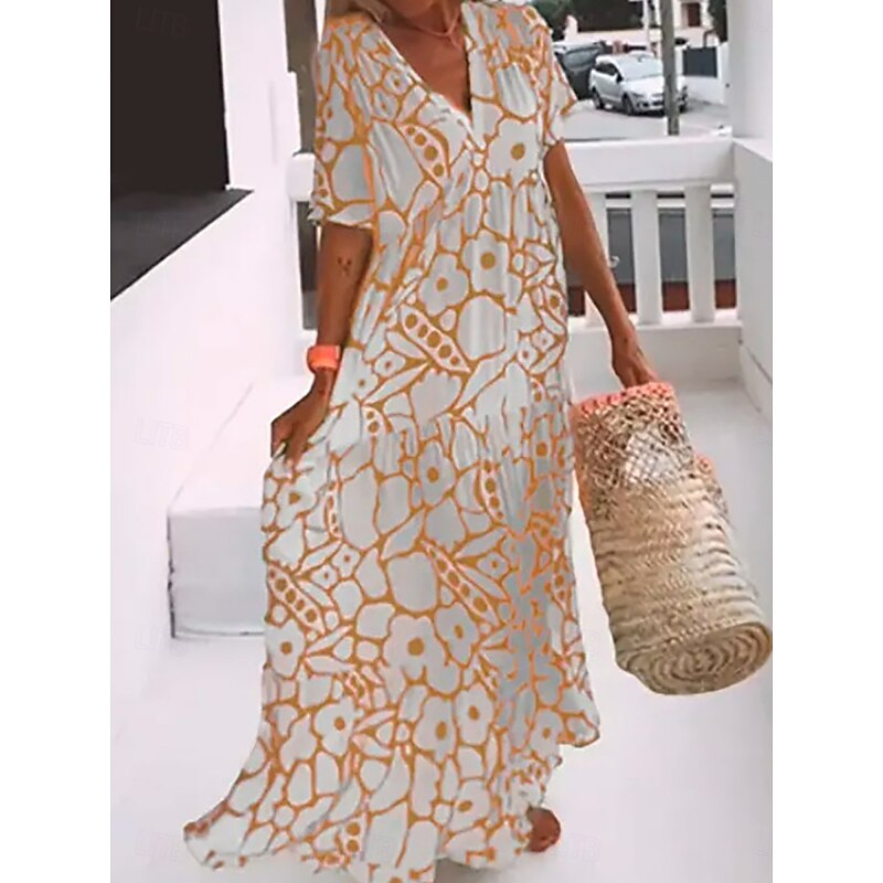 Women's Maxi Dress Casual Dress Stylish Casual Vacation Daily Regular Fit Floral Half Sleeve V Neck Black Pink Orange Green Summer 2