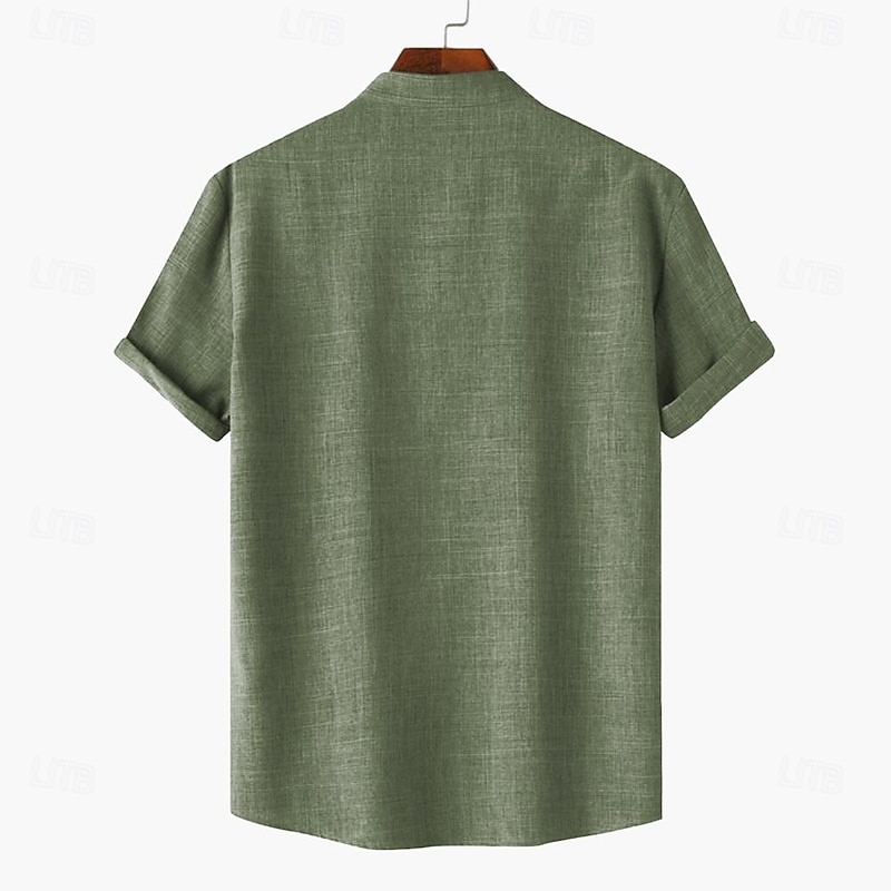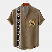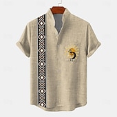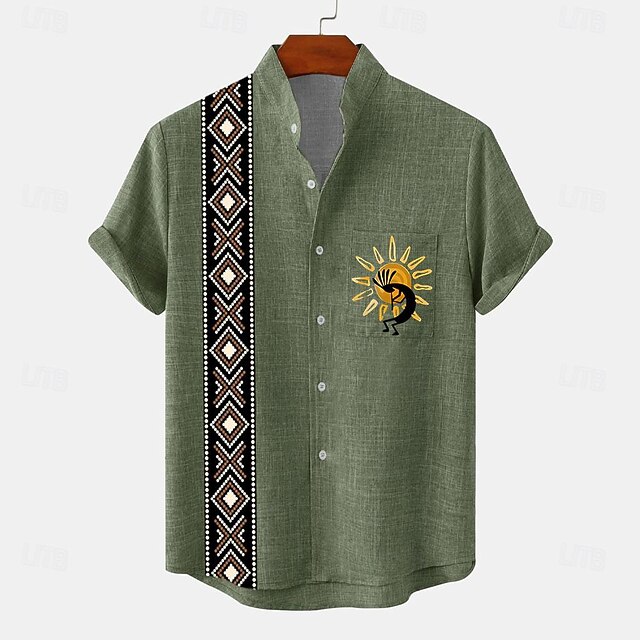 More information about Men's Shirt Bowling Shirt Button Up Shirt Short Sleeve Vintage Casual Tribal Daily Holiday Summer Spring Band Collar grandad collar Print Green Khaki Beige