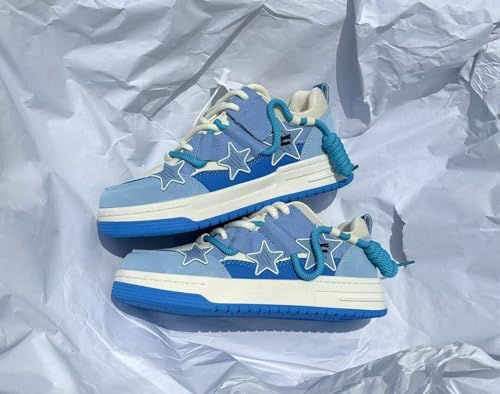 Y2K Chunky Star Print Sneakers for Women – Preppy Vibe Casual Thick Sole Shoes with PU Material, Versatile Elevated 5