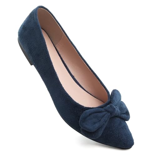 Hee grand Bowknot Flats for Women Comfort Pointed Toe Dress Shoes Slip On Ballet Flats Lightweight 5