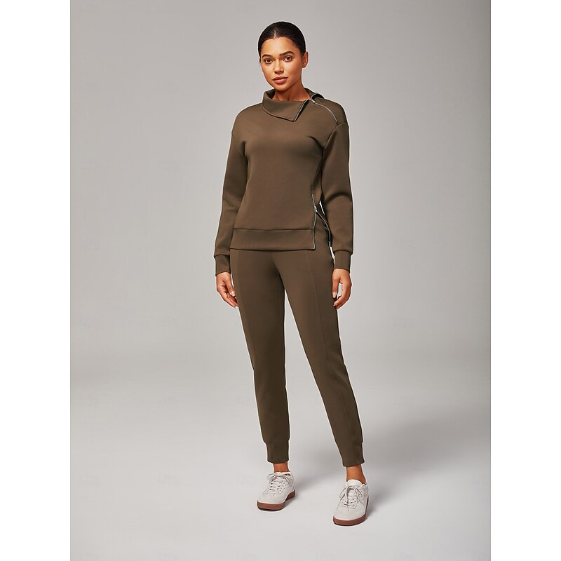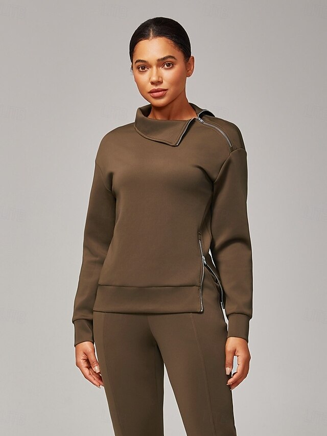 More information about Women's Brown Stretch Knit Zip Slit High Neck Top Tracksuit Jacket Stand Collar Stylish Comfortable Casual Daily Work Versatile Fall