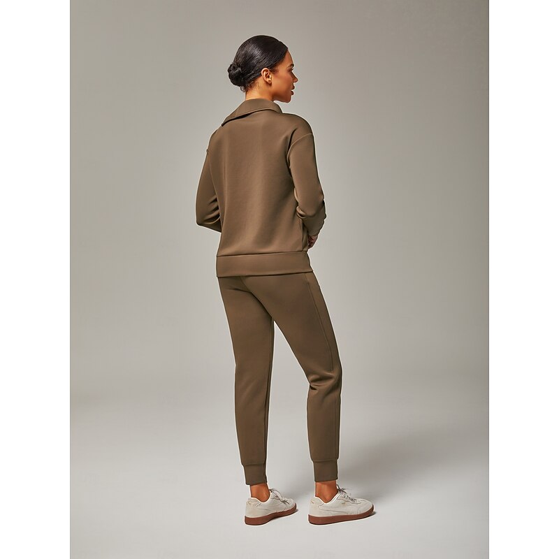 Women's Brown Stretch Knit Zip Slit High Neck Top Tracksuit Jacket Stand Collar Stylish Comfortable Casual Daily Work Versatile Fall 3