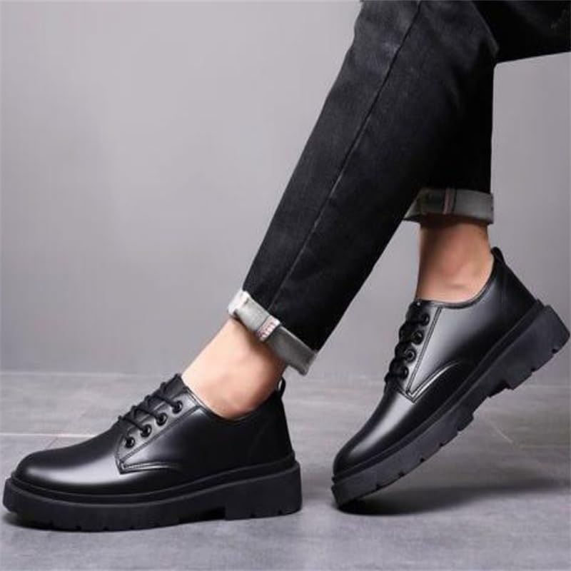 Men's Business Oxford Shoes British Casual Shoes Round Toe Flat Low-top Lace-up Comfortable Non-Slip Soft-Soled Shoes for Men 6