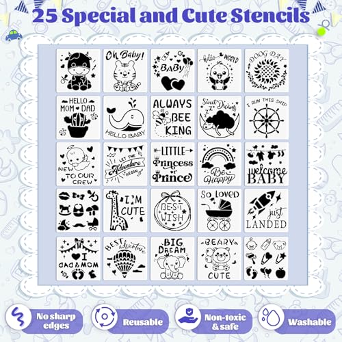 • High-Quality, Safe Materials: The bibs and bodysuit are made of soft, breathable cotton for baby comfort. The fabric markers are non-toxic and easy to color. The stencils, clothespins, and string are durable, perfect for creating memorable baby shower activities for guests(Note: Bodysuit and bibs will not fade easily if they are washed 24 hours after painting with fabric markers)