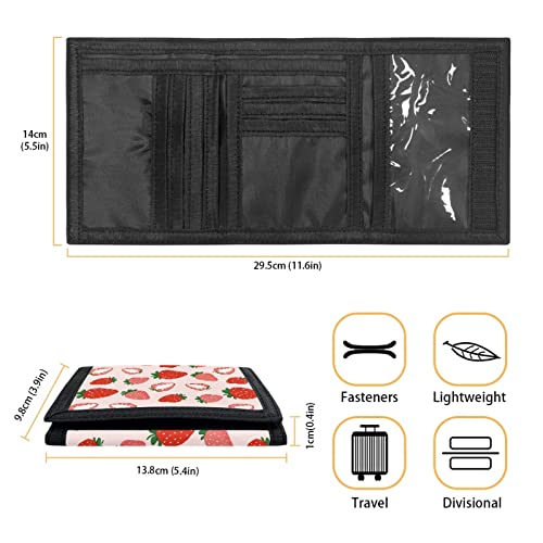 Coldinair Strawberry Print Wallet for Women Girls Teens RFID Trifold Canvas Wallets for Outdoor School Travel 1