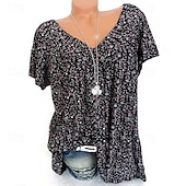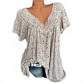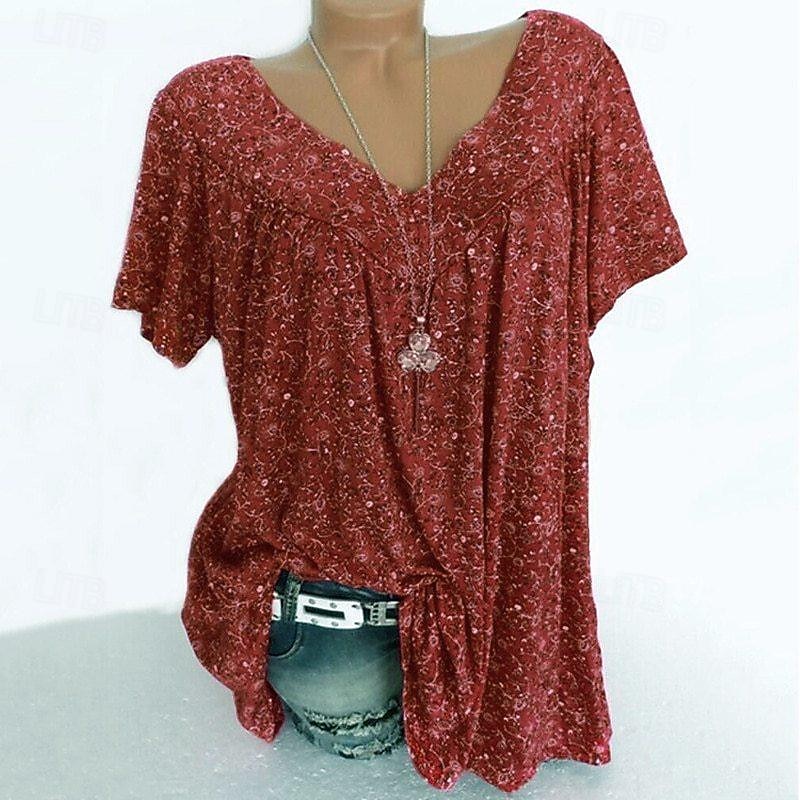 Highlights [Fabric]: Crafted from high-quality polyester, this women's blouse offers a lightweight and breathable option for summer wear. The micro-elastic nature of the fabric ensures a comfortable and flexible fit, allowing for ease of movement throughout the day. [Silhouette]: This blouse features a regular fit and flowy silhouette, designed to flatter a variety of body types. The short sleeves and regular top length make it a versatile addition to your wardrobe, suitable for both casual and chic settings. [Design Highlights]: The blouse showcases a stylish floral print combined with a modern V-neckline, adding an elegant touch to the overall look. This design is perfect for those seeking a blend of sophistication and comfort, with its lightweight fabric and micro-elasticity providing a relaxed feel. [Occasions]: Ideal for daily wear or vacations, this blouse is perfect for your summer adventures. Whether you're pairing it with jeans for a casual outing or a skirt for a more polished look, it suits a variety of occasions, ensuring you always look stylish. [Size Range]: Available in a wide range of sizes (S, M, L, XL, 2XL, 3XL, 4XL, 5XL), this blouse caters to different body types, offering a comfortable and chic fit for every woman.