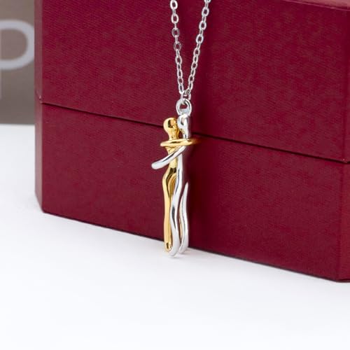 S925 Sterling Silver Couple Hug Necklace - With Ready To Gift Box & Self Writng Note For Your Partner- Birthday/Valentine's Day Gift For Couples - Premium Quality Craftmanship 1