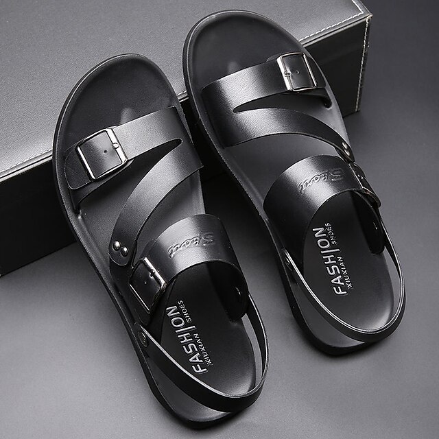 Highlights [Material] : Constructed from high-quality PU leather, these men's sandals offer a sleek and polished look with long-lasting durability. The soft, breathable material ensures comfort throughout the day, making them perfect for warm summer weather. [Fit] : Designed with an open toe and classic style, these sandals provide a comfortable and casual fit. The double buckle straps are adjustable, allowing for a customizable and secure experience, ideal for daily wear and outdoor adventures. [Design Highlights] : Featuring a minimalist design, the sandals boast sleek double buckle straps for a modern touch. The cushioned footbed is contoured to support the shape of the foot, ensuring all-day comfort, while the durable rubber outsole provides excellent traction and stability. [Occasions] : These versatile sandals are perfect for daily wear and outdoor activities, suitable for everything from casual outings to relaxed weekend gatherings. Their timeless design makes them a functional and fashionable footwear choice for the summer season. [Size Range] : Available in various sizes, from EU 38 to EU 48 (UK sizes 14.5), ensuring a suitable fit for a wide range of foot sizes.