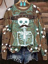 More information about Halloween Women's Sweatshirts Skulls Graphic Warm Casual Festival Long Sleeve Crew Neck Round Neck Regular Tops Street Dailywear Casual Print Maroon Red Orange Spring Fall Winter