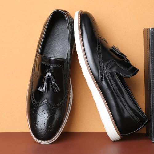 Men's Tassel Brogue Leather Dress Loafers,Fashion Hand Stitching Wingtip Slip On Breathable Comfortable Party Business Formal Shoes 7
