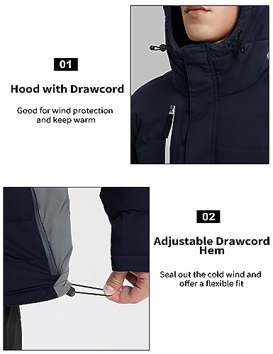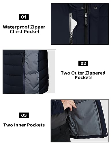 • Waterproof & Durable Puffer Jacket: The down jacket has a durable water-repellent coating to withstand light rain. The fabric's surface maintains water resistance over time. The YKK waterproof zipper enhances waterproofing.