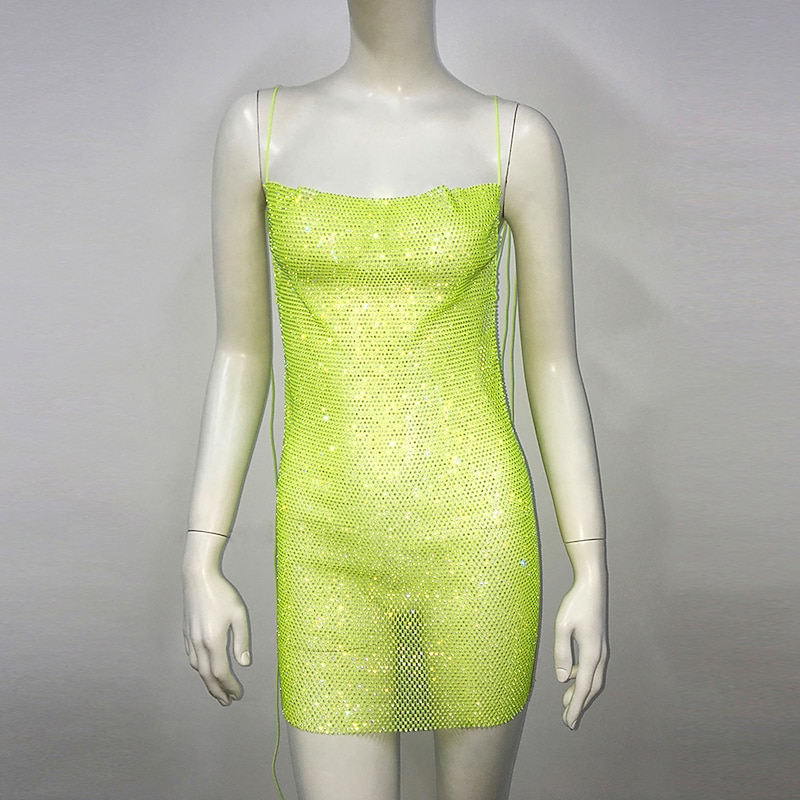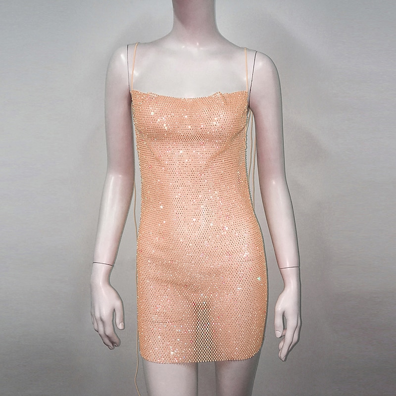 More information about Metallic Backless Sparkle Mini Dress Sheer Mesh Rhinestone Cover Up Disco Solid Color Fancy Dress Women's Party Club Adults' Dress Summer
