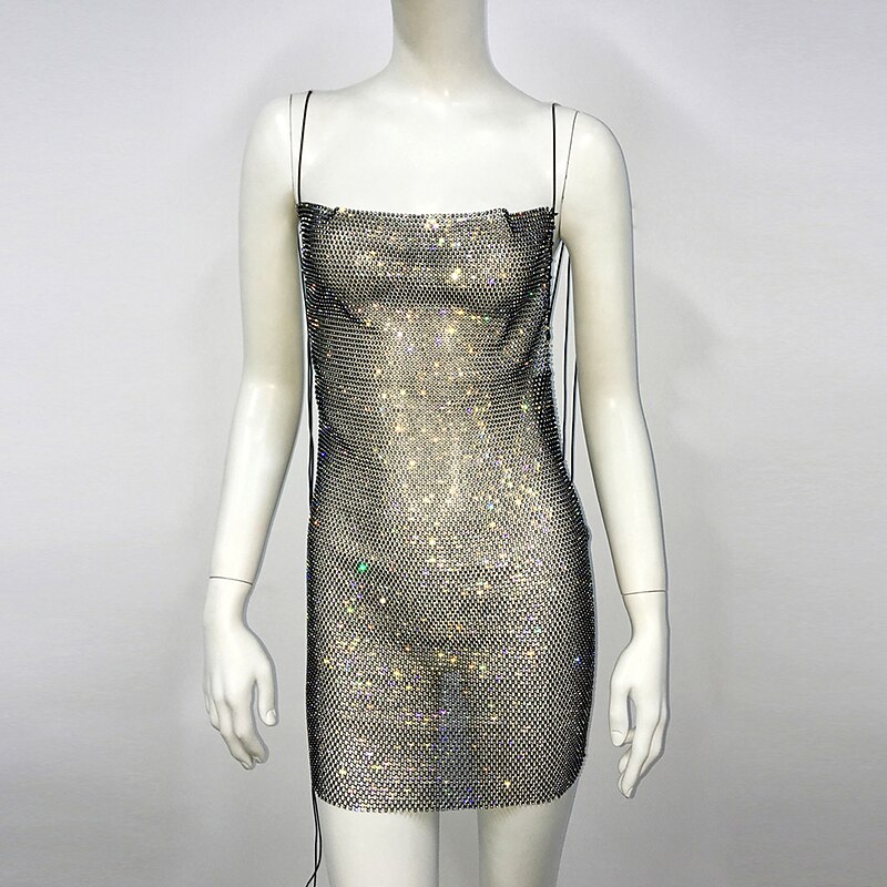 $43.99 - Metallic Backless Sparkle Mini Dress Sheer Mesh Rhinestone Cover Up Disco Solid Color Fancy Dress Women's Party Club Adults' Dress Summer 2025. Shop for cheap Sexy Costumes online? Buy at lightinthebox.com on sale today!