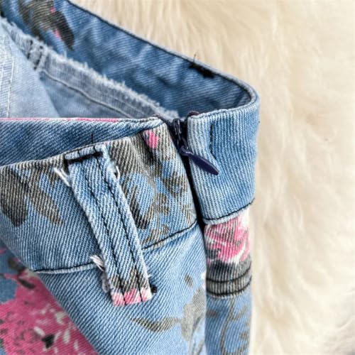 Women Print Short Sleeves Tops and High Waist Skirts Streetwear Denim 2 Piece Set 5