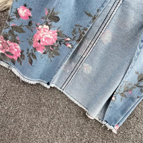 More information about Women Print Short Sleeves Tops and High Waist Skirts Streetwear Denim 2 Piece Set
