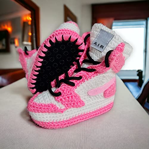 Handmade Pink Crochet Baby Sneaker Slippers, Jordans-Inspired Design, Newborns & Toddlers, Customizable Gifts, Walker Soft Plush Shoes 9