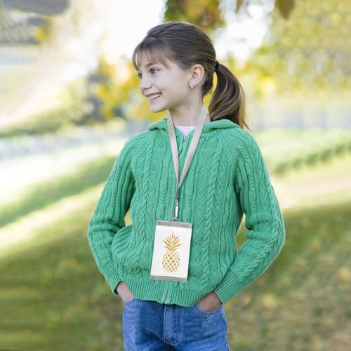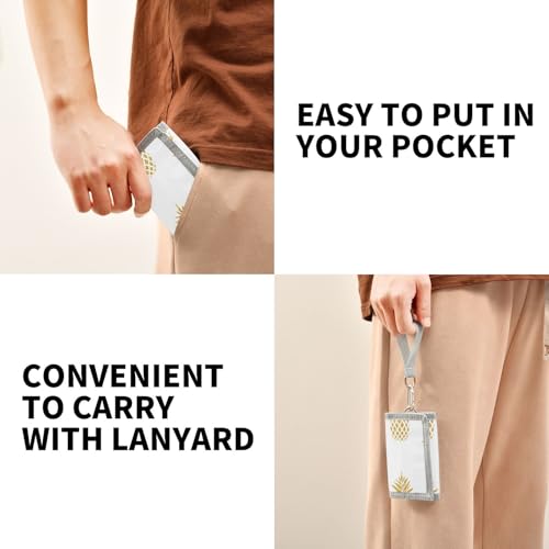 OTVEE Summer Gold Color Pineapple Fruits Trifold Wallet Fabric Wallet Small Nylon Wallet Card Wallet with Lanyard 4