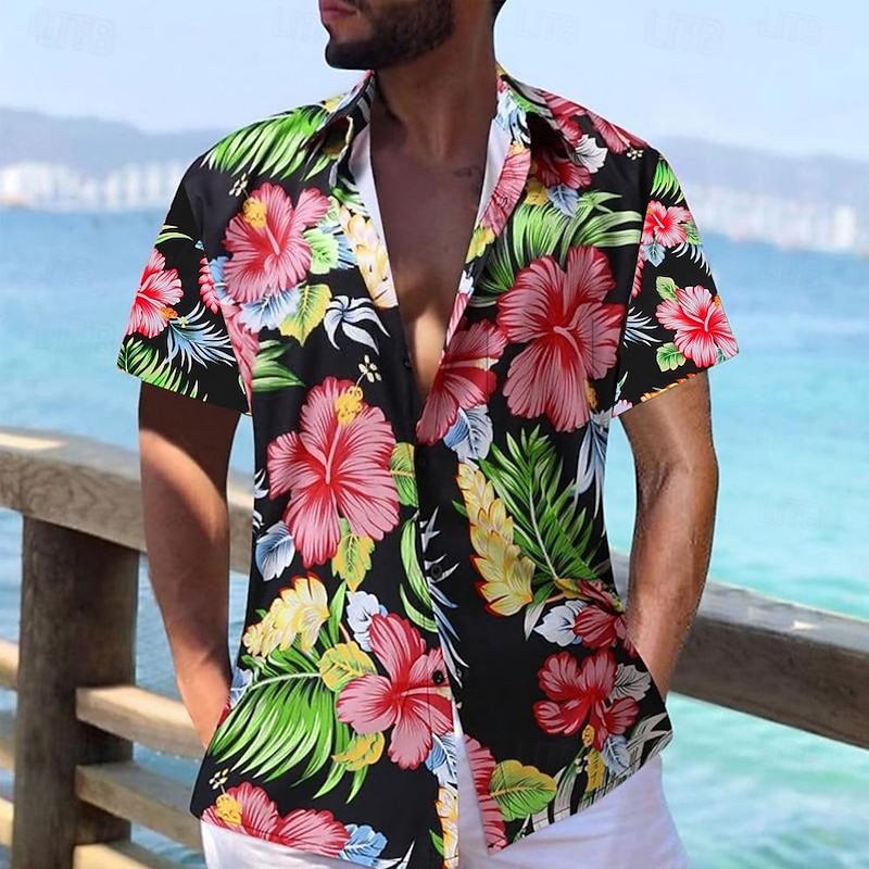 More information about Men's Floral Graphic Prints Shirt Summer Hawaiian Shirt Short Sleeves Shirt Turndown Outdoor Street Black Yellow Red Navy Blue Royal Blue Print Clothing Apparel Fashion Designer Casual Soft