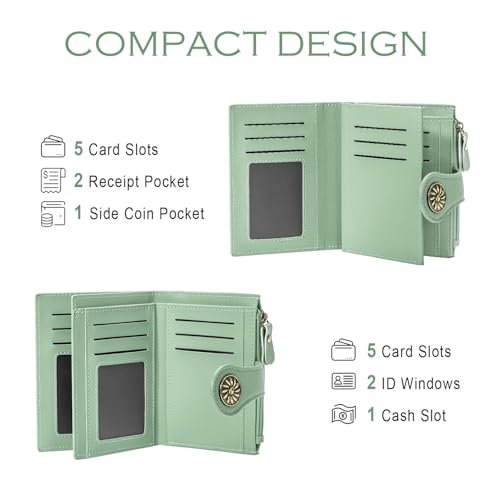 Small Wallets Woman Leather 2 ID Windows Bifold RFID Blocking Credit Card Holder Wallet with Zipper Coin Pocket 4