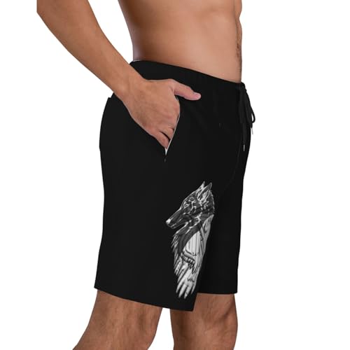 HOT ! Viking Norse Wolf Raven Mens Swim Trunks Quick Dry Board Shorts 7" - Hawaii Beach Swimwear