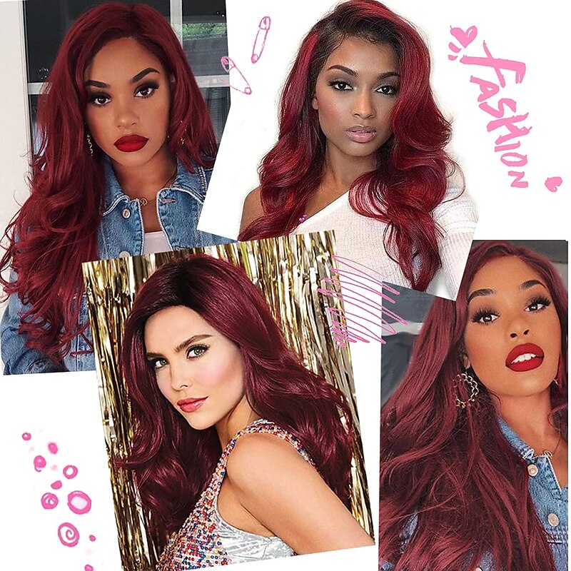 Red Synthetic Wig Long Wavy Side Part Heat Resistance Wig Natural Looking Fiber for Women Cosplay or Daily Use. Halloween Wigs 29