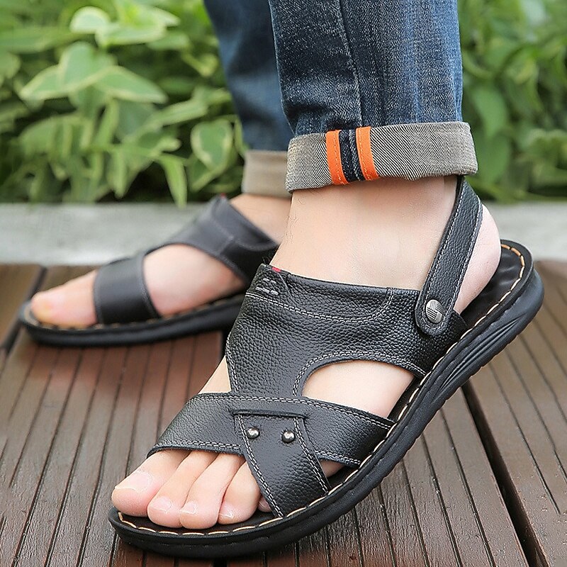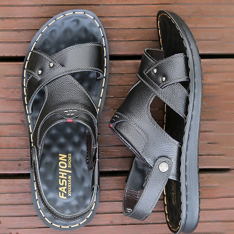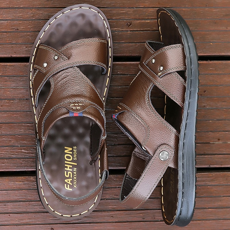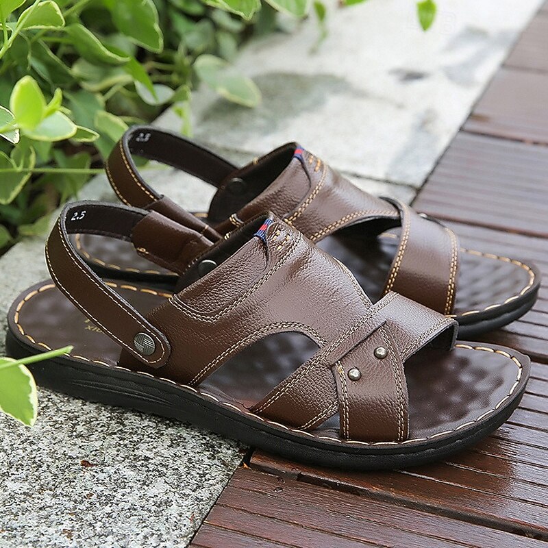 HOT ! Men's Brown Faux Leather Sandals - Comfortable Open-Toe Summer Footwear with Adjustable Straps for Casual and Outdoor Use