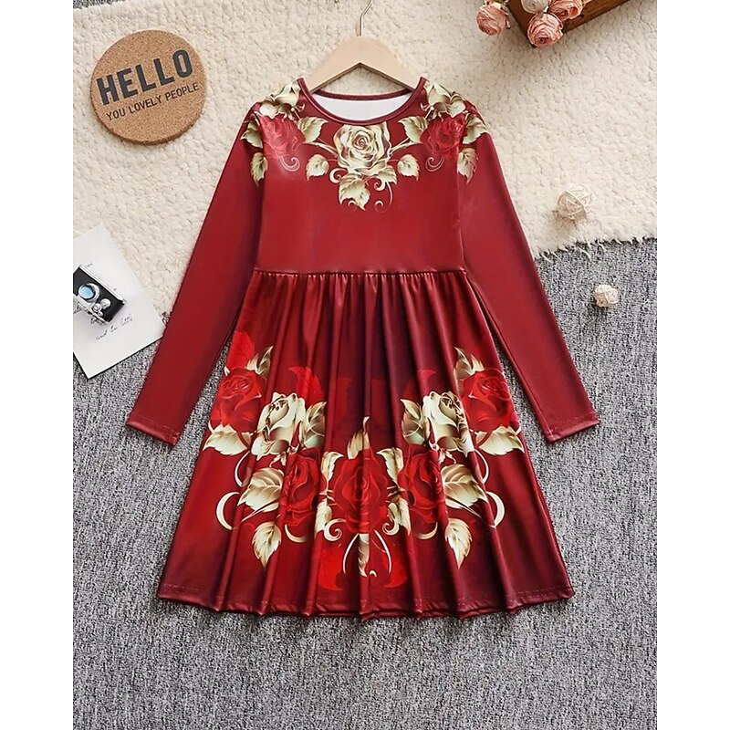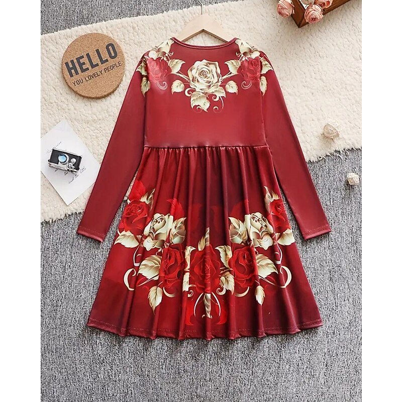 More information about Easter Girls' 3D Rose Graphic Dress Long Sleeve Summer Spring Vacation Daily Holiday Princess Beautiful Sweet Kids 4-12 Years Casual Dress A Line Dress Knee-length Regular Fit
