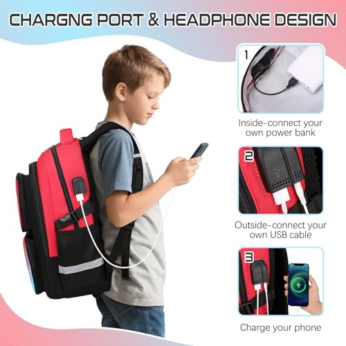 • 【Multi-Compartments & Large Capacity】Jafeton bookbag for teens aim to provide more spacious & extremely practical organization for your kids back to school supplies. 1 spacious main compartment, 2 zip compartments, 2 front zip pockets, 2 elastic side pockets and 1 hidden back pocket, which not only fit most from books and 15in notebooks to pens and pencils, but also perfect for keeping keys, phones, water bottles etc. The kids backpack allow kids to organize all their items orderly