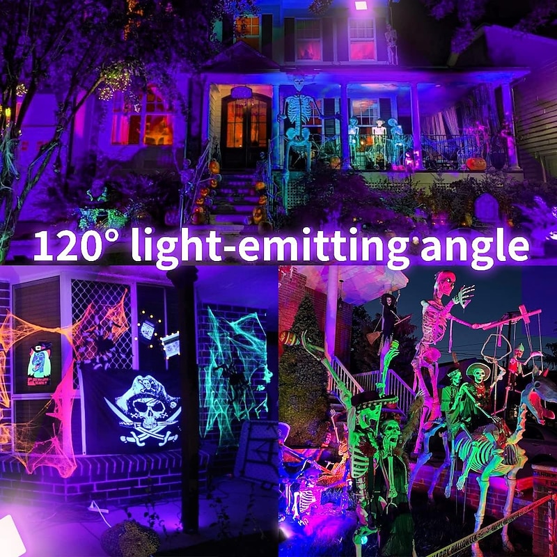 LED Black Lights 1-2 Pack of 30W 60W 120W UV Floodlight 395nm-405nm IP66 Waterproof High-power Black Light Plug with Switch (59in) for Parties Stages UV Resin Curing Paint for Halloween 6