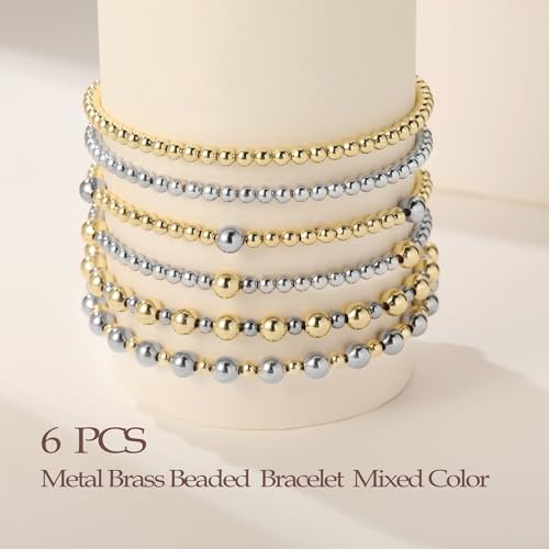• Metal Beads Bracelet:Compare to others,this gold and silver bracelets are made of brass.High polish round beads add a touch of glamour. 14K Gold Plated bracelet for Non tranish wear.