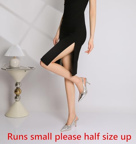 RIBONGZ Slingback Heels for Women Kitten Heels Closed Pointed Toe Ankle Strap Low Heeled Sexy Pumps Wedding Bride Guest Party Evening Prom Formal Herls Dressy Shoes 1