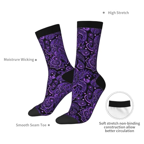 • Design: Cool 3d printing novelty purple socks are unique and fashionable. A wide range of colors to reflect your style and needs, These fun and innovative dress/crew socks are suitable for wearing during sports and daily decoration, it not only keeps warm but also pairs well with items