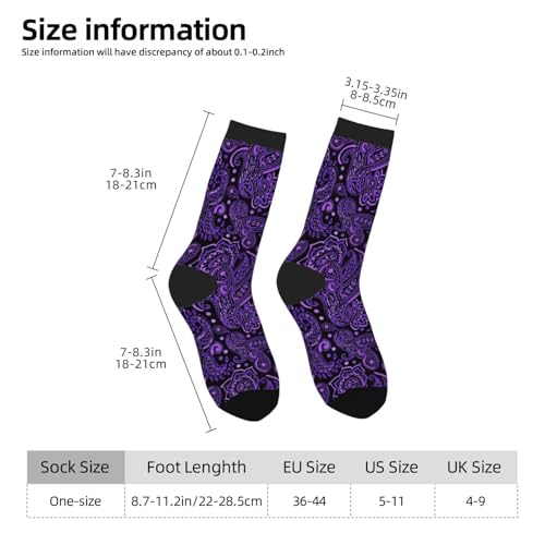 • One Size Fits Most : These purple novelty funny socks for women and men , stretchy and flexible. Fit for US size 5 - 11, Length: 40 cm; Suitable for all seasons