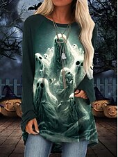 More information about Halloween Women's T shirt Monster Graphic Cat Vintage Stylish Classic Long Sleeve Crew Neck Round Neck Long Tops Daily Print Black Light Grey Dark Gray Spring Fall